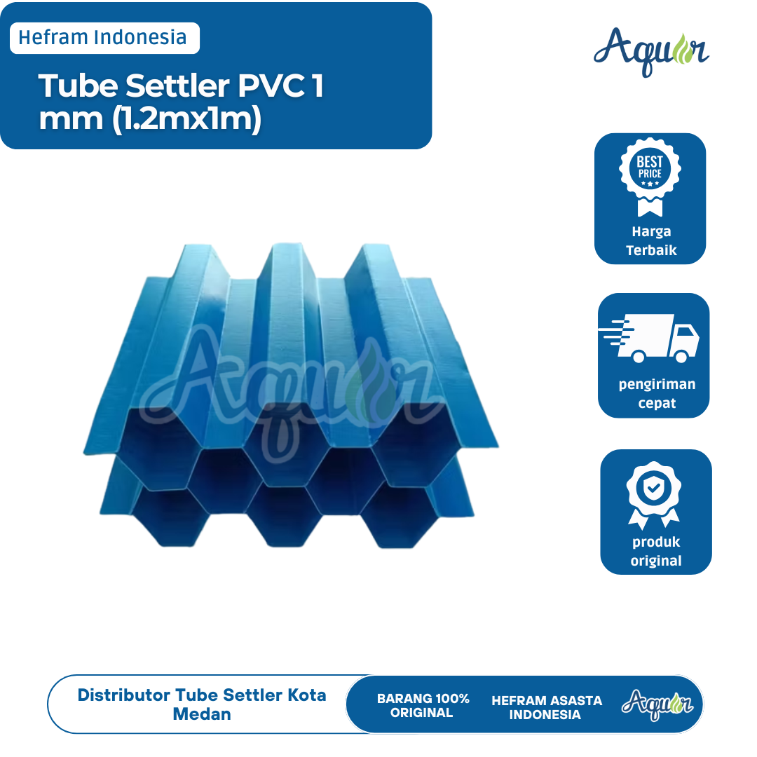 Distributor Tube Settler PVC 1 mm (1.2mx1m) di Medan. Produk berkualitas tinggi untuk pengolahan air bersih dengan harga terbaik & pengiriman cepat. Kota Medan sebagai pusat industri dan perdagangan di Sumatera Utara memiliki kebutuhan besar terhadap teknologi pengolahan air bersih. Salah satu solusi yang terbukti efektif adalah penggunaan Tube Settler. Kami hadir sebagai distributor resmi Tube Settler PVC 1 mm (1.2mx1m) di Medan, menawarkan produk berkualitas tinggi dengan harga kompetitif dan layanan pengiriman cepat.