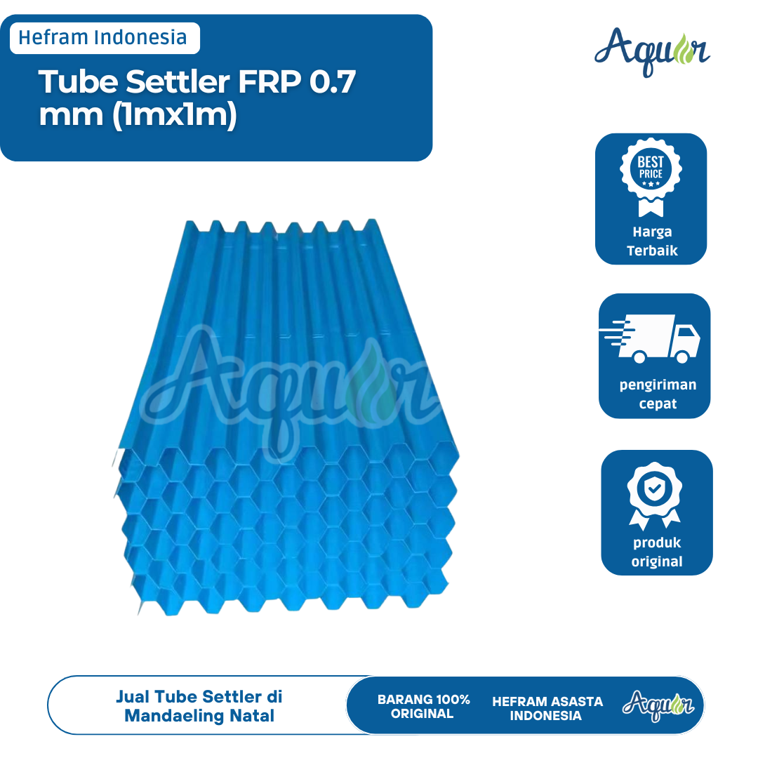 Jual Tube Settler FRP 0.7 mm (1mx1m) di Mandaeling Natal. Produk berkualitas tinggi untuk pengolahan air bersih dengan harga terbaik & pengiriman cepat. Kabupaten Mandaeling Natal di Sumatera Utara memiliki potensi besar di sektor pertanian, perikanan, dan pariwisata. Seiring dengan perkembangan tersebut, kebutuhan akan teknologi pengolahan air bersih semakin meningkat. Salah satu solusi modern yang terbukti efektif adalah Tube Settler. Kami hadir untuk menawarkan Tube Settler FRP 0.7 mm (1mx1m) dengan kualitas terbaik, harga kompetitif, dan jaminan hasil maksimal.